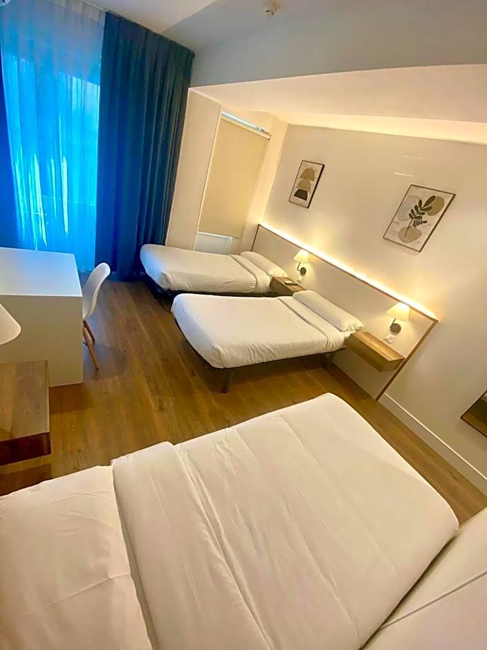 This triple room offers 3 single beds with a private bathroom. It has modern décor and a parquet floor. The room also offers a flat-screen TV and air conditioning.